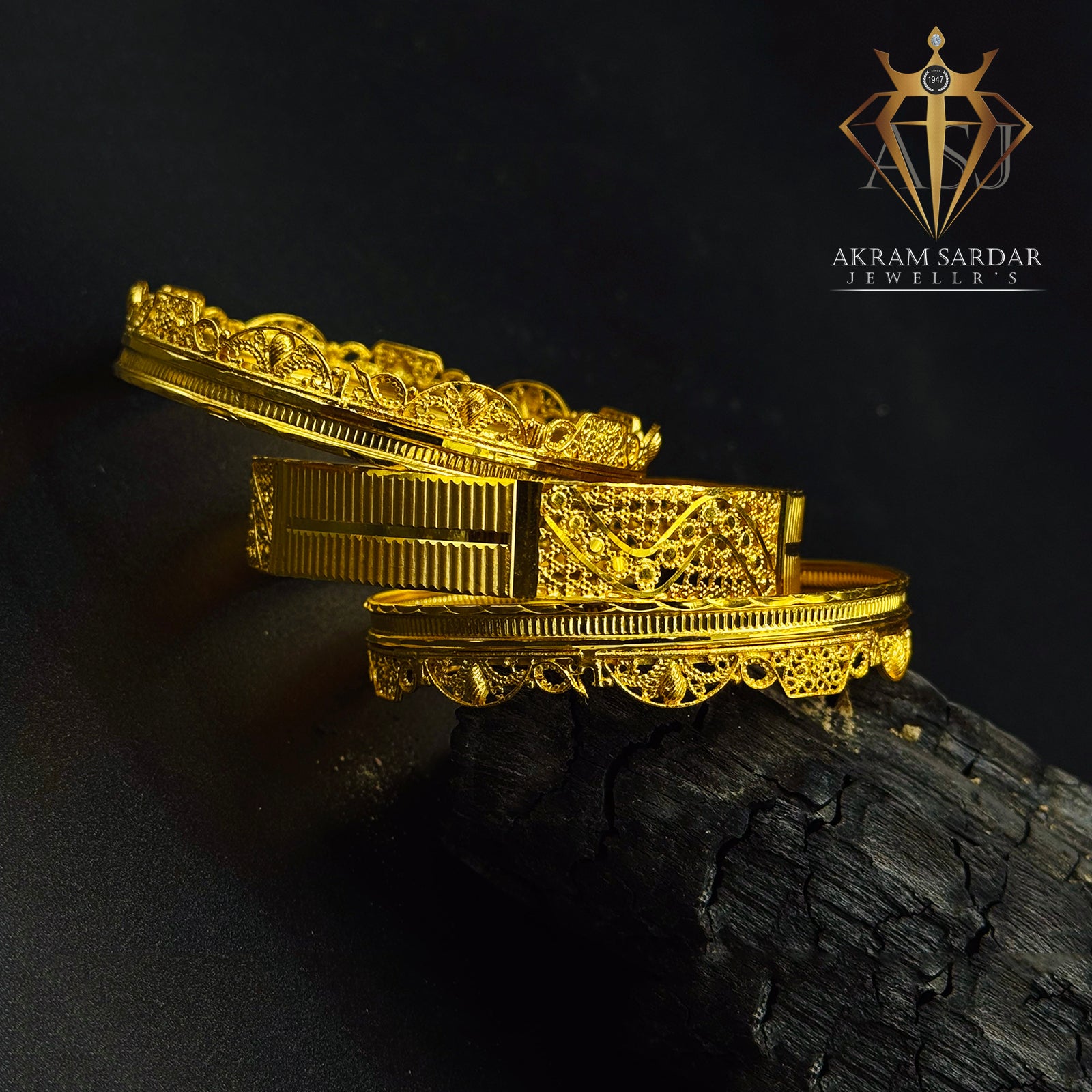 Add a touch of timeless sophistication to your look with this beautifully crafted gold-plated bangle. Designed for both everyday elegance and special occasions, this piece features a smooth, high-polish finish that catches the light with every movement. Lightweight yet durable, the bangle offers a comfortable fit and a luxurious feel, making it a versatile accessory for any wardrobe. Wear it solo for a minimalist statement or stack it with other bangles for a chic layered effect.