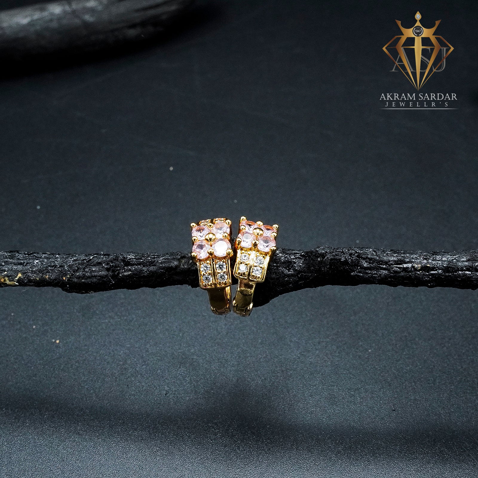 - Golden base fully studded with white stones