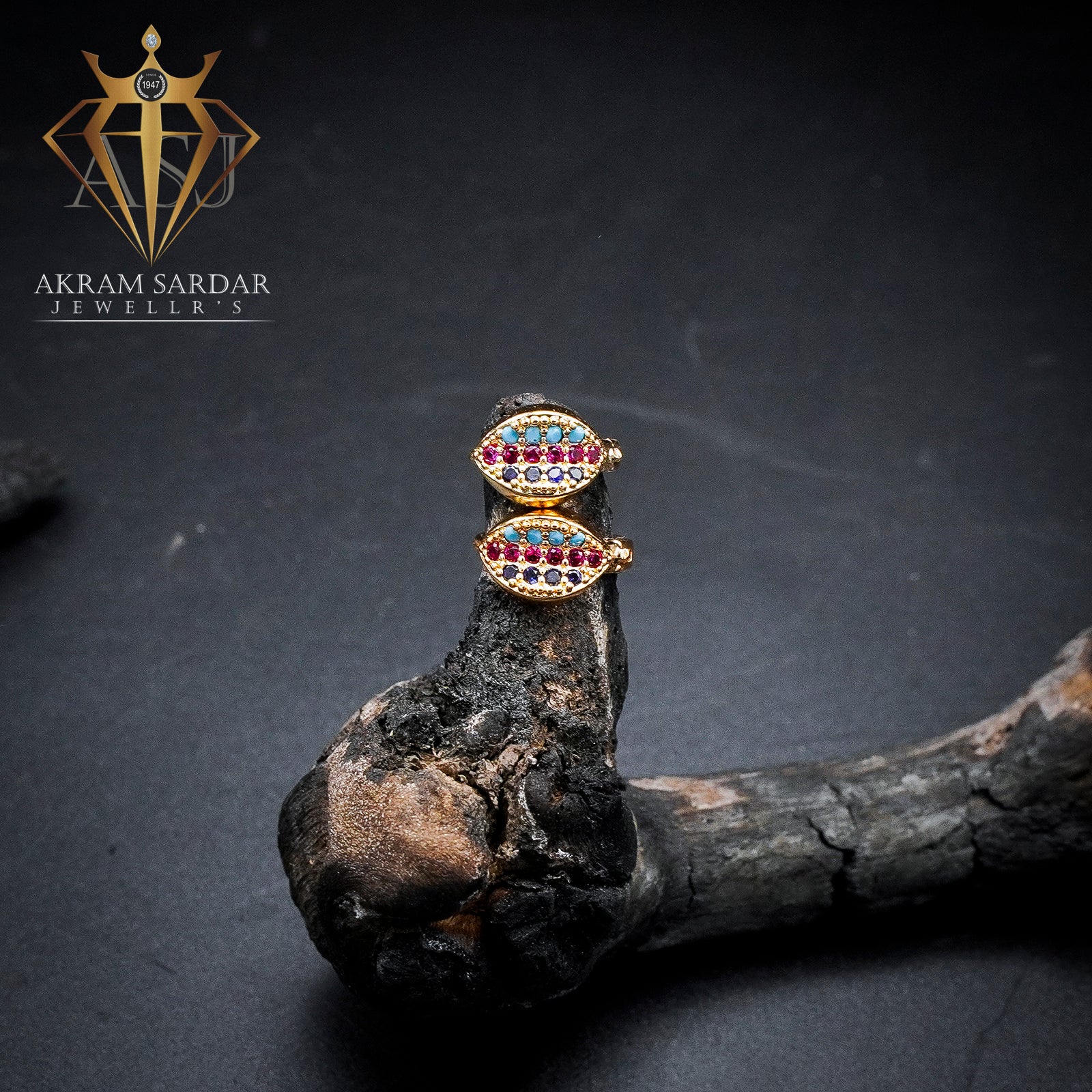 A sleek sparkle in every glance — Gleam Eye Tops feature a horizontal eye shape on a golden base, detailed with shimmering stones.