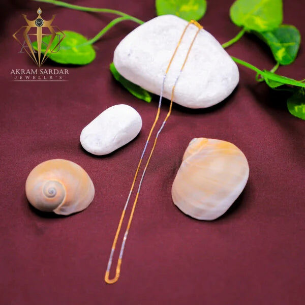 The Nida Multi-Tone Chain is a stunning combination of gold, silver, and other vibrant hues, creating a unique design that stands out with elegance and flair. This chain is perfect for those who want a versatile piece that can complement any outfit, from casual daywear to evening glamour.