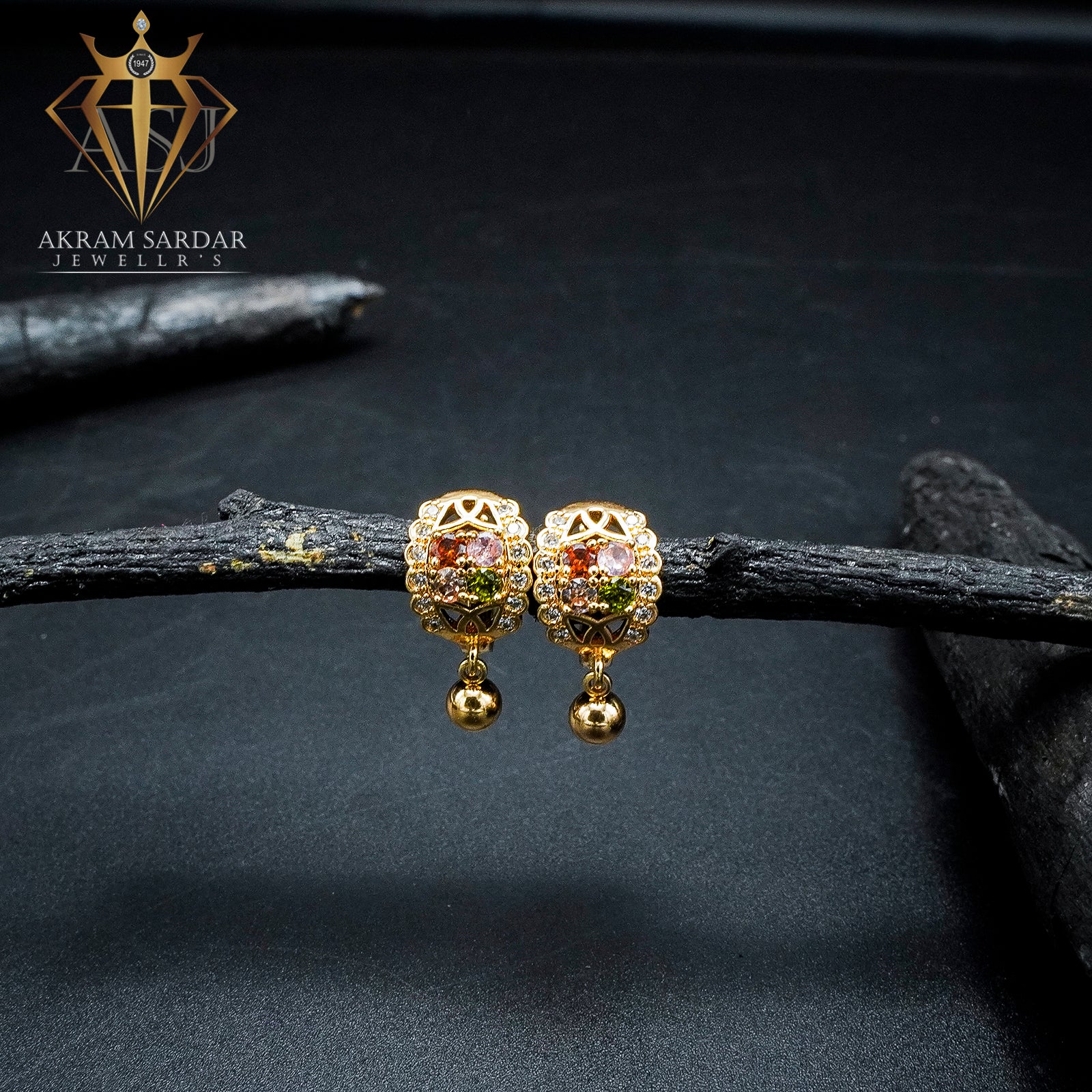 A sparkle of tradition with a hint of charm — Noor Bell Tops feature a rounded golden base, colorful stones, and a dainty golden ball drop for a graceful finish.