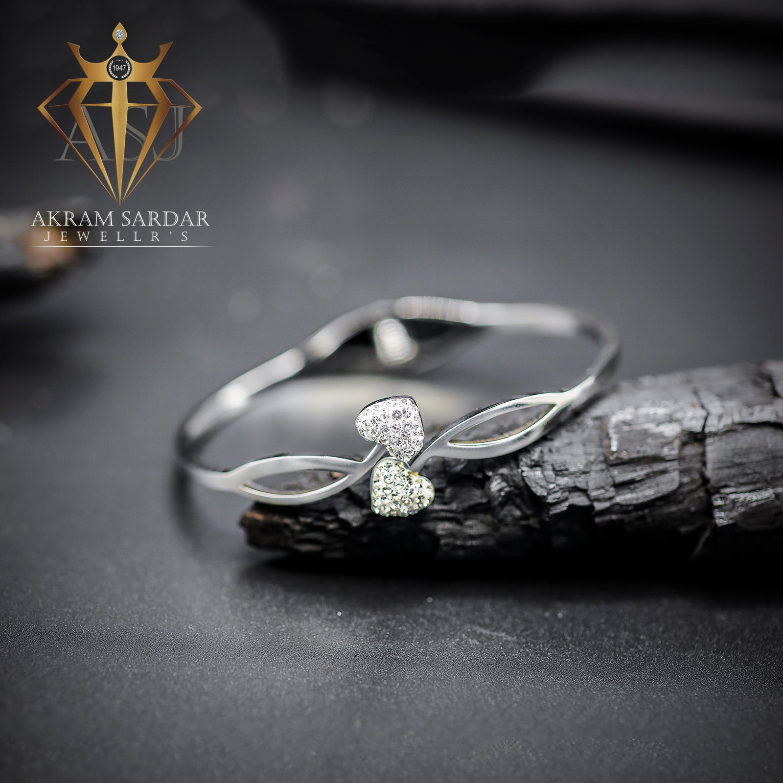 A stylish silver-tone kara bracelet finished with white diamond-style stones for a subtle sparkle. Ideal for formal looks or festive styling.