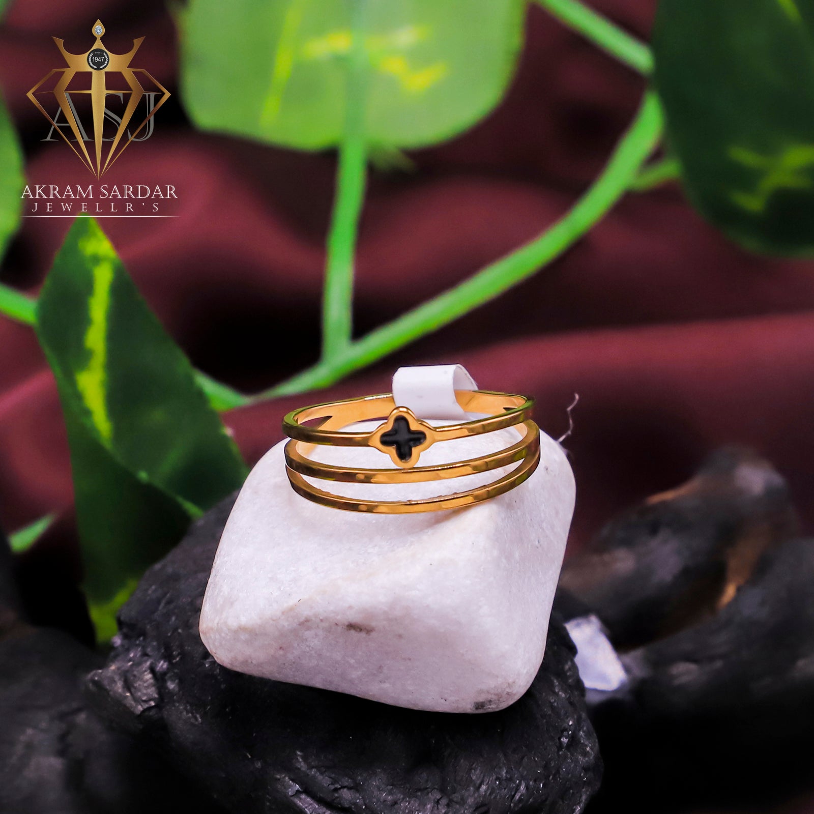 Three sleek gold bands with one accented by small black stones create a bold yet balanced look. Adjustable for the perfect fit, blending modern elegance with a hint of mystery.